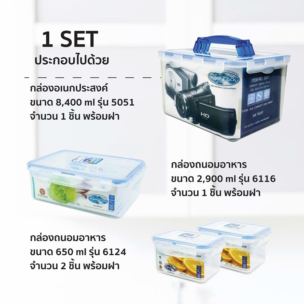 Super Lock กล่องถนอมอาหาร รุ่น 5051 กล่องป้องกันแบคทีเรีย BPA Free เข้าไมโครเวฟได้ รวม 20 ชิ้น ประกอบด้วย