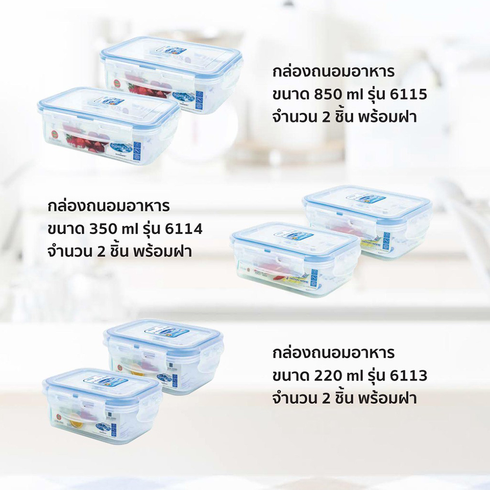 • เทคโนโลยีพิเศษล็อก 2 ชั้น ทำให้อากาศไม่สามารถผ่านเข้าออกได้ จึงถนอมอาหารได้ยาวนานกว่ากล่องทั่วไป